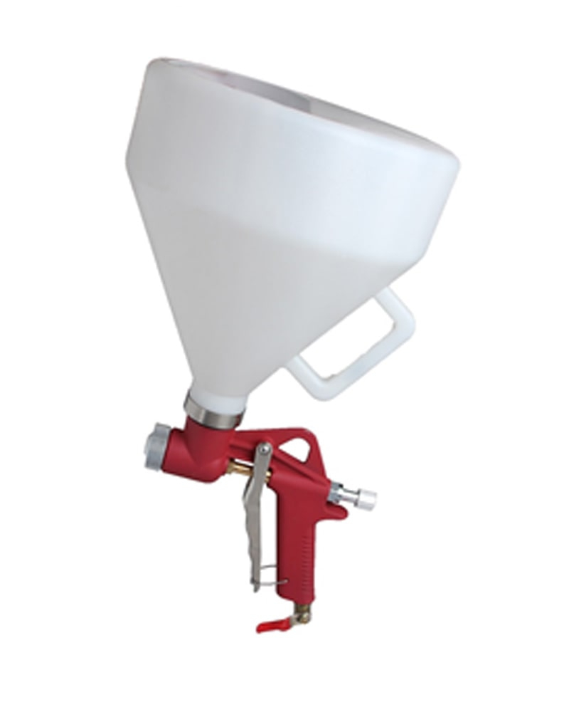 Подходит для текстурных покрытий. Бункерная система (6 литров) и удобная конструкция ручки пистолета облегчает покраску стен, потолков и полов. Изготовлен из  высококачественного алюминиевого сплава и пластика, прочный и антикоррозионный, легкий, простой в использовании. идеальная производительность с регулируемым  контролем материала. Ручка на чашке позволяет легко использовать.