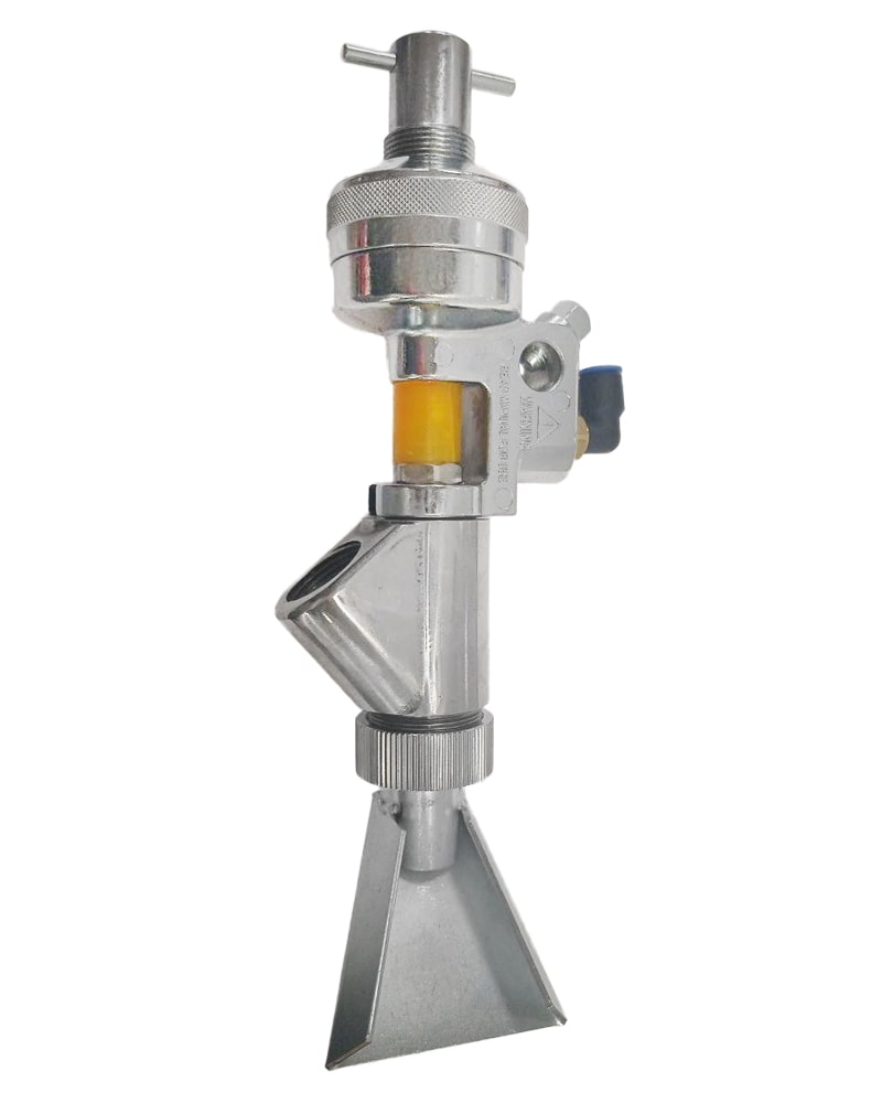 Автоматический пистолет-распылитель для систем нанесения дорожной разметки с нанесением светоотражающих материалов.
