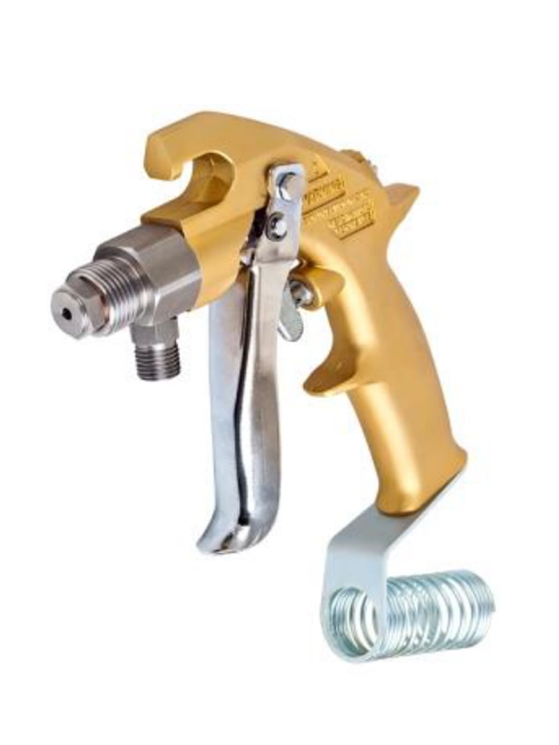 Предназначен для нанесения высоковязких материалов. Рассчитан на рабочее давление до 500 Бар. Шланг подключается напрямую к узлу запирания подачи, что исключает дополнительные повороты канала прохождения материала, защищает руку маляра при нанесении ЛКМ методом горячего распыления.