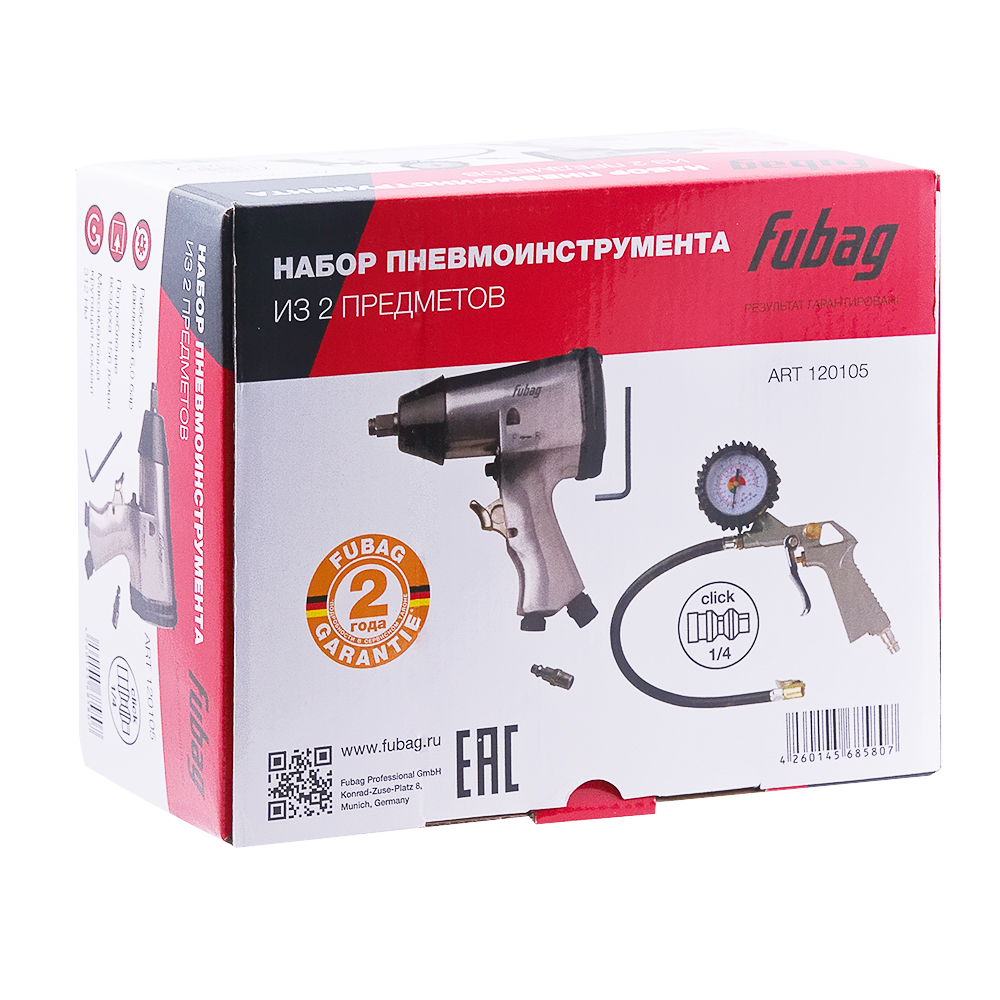 В комплект набора входят: пневмогайковерт (158 л/мин, 312 н/м, 6 бар), пневмопистолет для накачки шин с манометром, шестигранный ключ 4 мм.
