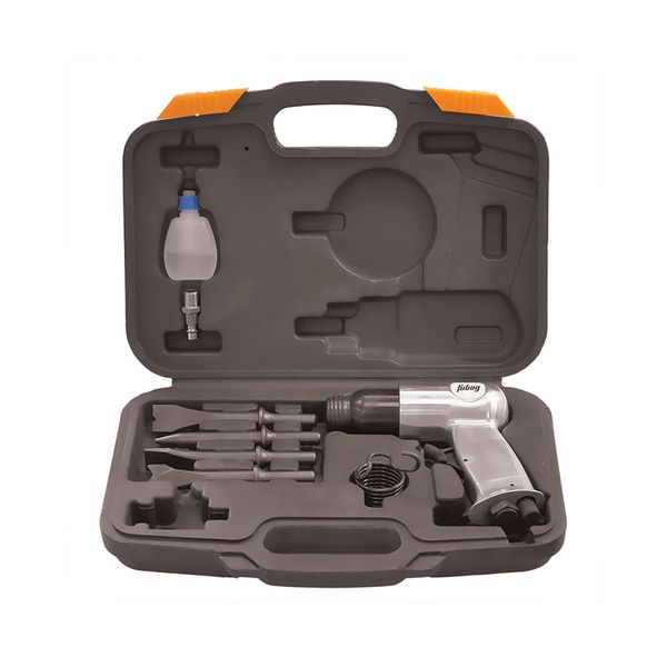 В комплект набора входит: пневмодолото, кейс, 4 зубил, штуцер