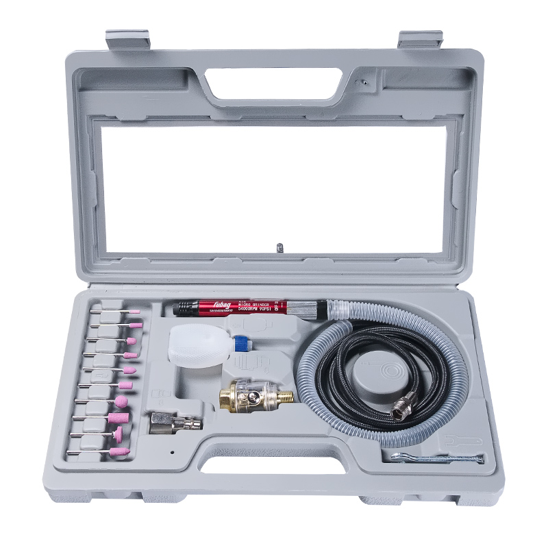 В комплект набора входят: кейс, шланг, штуцер, 10 резцов, минилубрикатор, ключи
