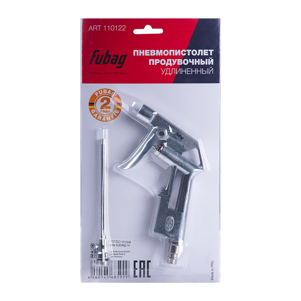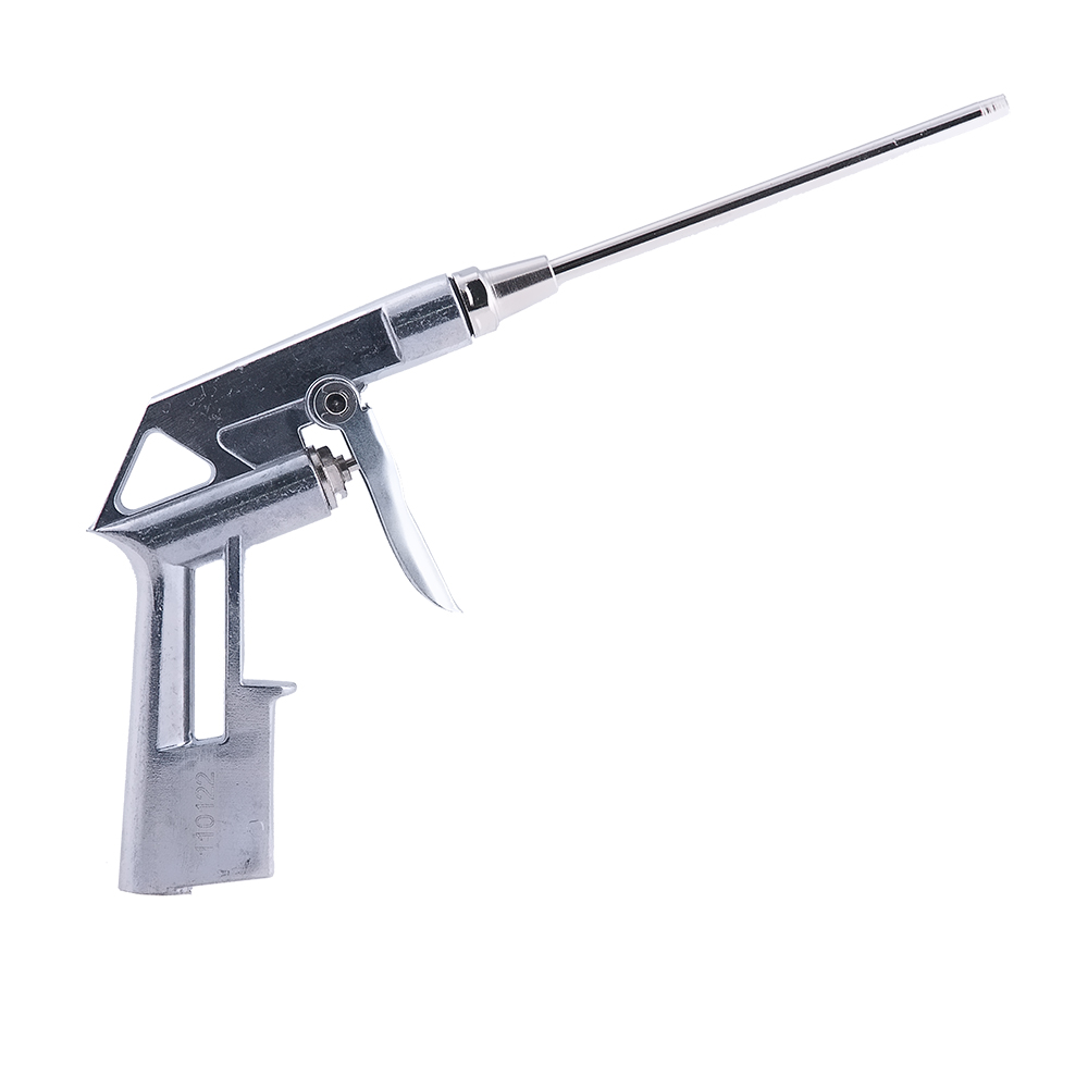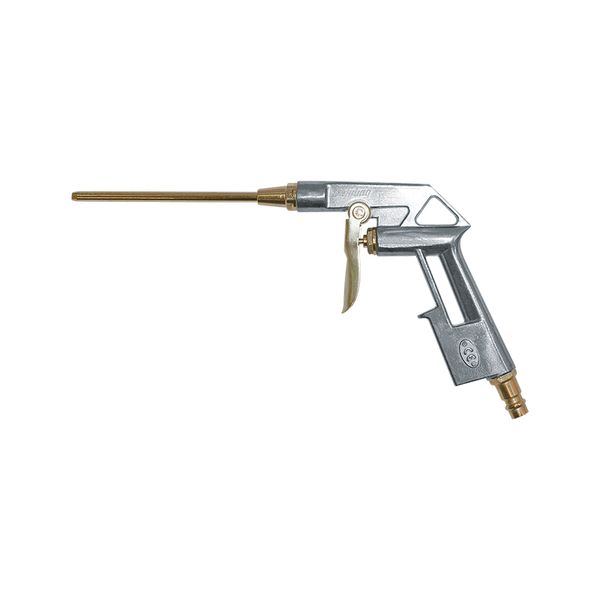 Пневмопистолет продувочный удлиненный в блистере. Длинный узкий носик позволяет работать в узких щелях и прочих труднодоступных местах. Корпус выполнен из металла.