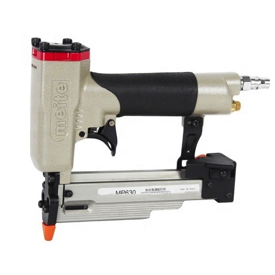 Пневматический шпилькозабивной пистолет meite MP630 предназначен для скрепления некрупных деталей из дерева или пластика и не несущих конструкций. Например, планки, штапики, изготовление картинных и деревянных оконных рам, монтаж молдинга и декора, требующих аккуратного внешнего вида готового изделия. Этот шпилькозабиватель применяется с микрошпильками размером от 12 до 30 мм, которые используются для финишных работ, так как при вбивании не оставляют следа на поверхности.
