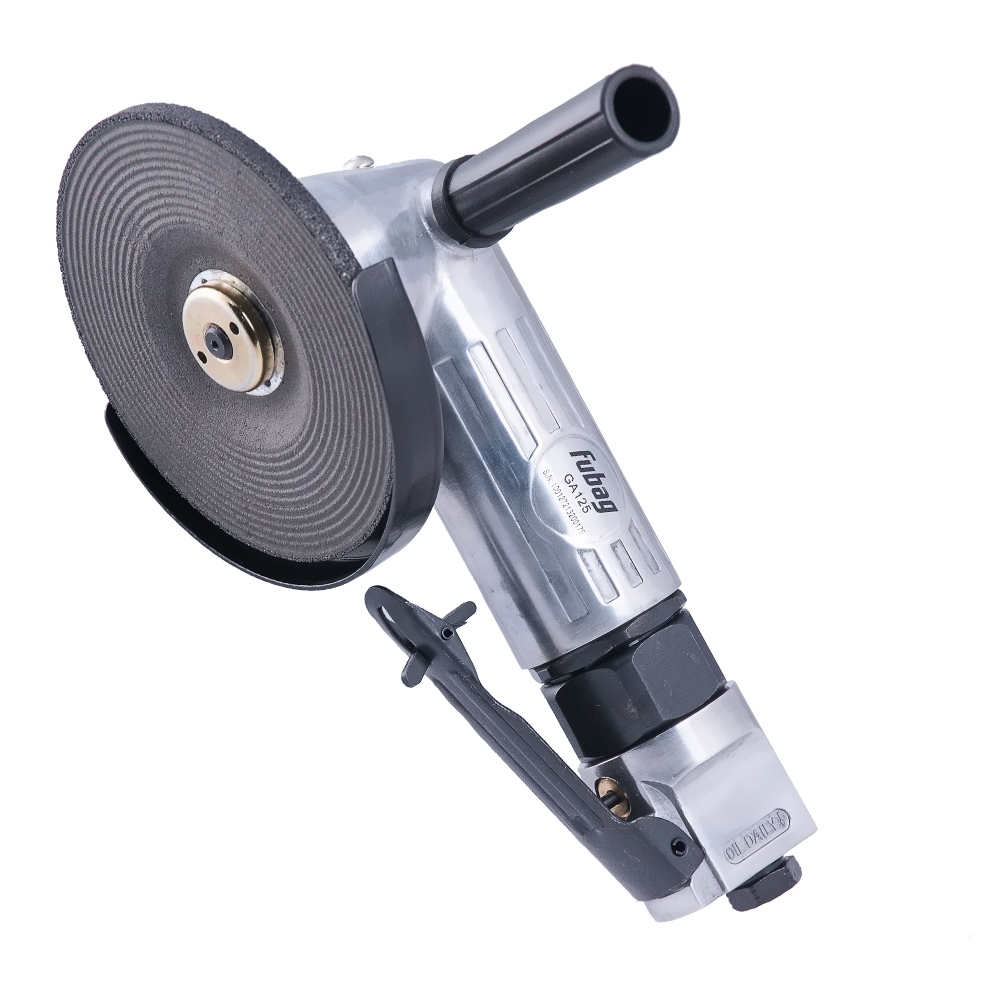 Пневмошлифмашина угловая GA125 с диском 125 мм с зажимной цангой для работы в местах с ограниченным доступом. Легкая ручка из эргономичного материала для комфортной работы. Термоизолирующие накладки значительно уменьшают шум и вибрацию. Головка машины расположена под углом 90 градусов к корпусу. В качестве оснастки подходят насадки любой формы, которые подходят под размер цанги.