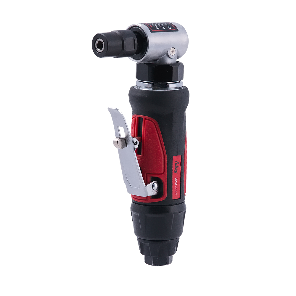 Композитная угловая пневмошлифмашина. С зажимной цангой на 6мм для работ в местах с ограниченным доступом. Головка расположена под углом 90° к корпусу. Легкая эргономичная ручка сделана из композитного материала; термоизолирующие накладки на ручке уменьшают шум и вибрацию; хорошо сбалансированная конструкция корпуса снижает утомляемость руки; в качестве оснастки можно использовать насадки любой формы, подходящие под размер цанги.