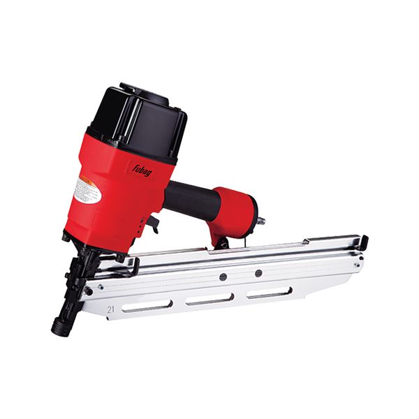 Гвоздезабивной пистолет Fubag N90 с магазином расположенным под углом к обрабатываемой поверхности. Незаменим для работ в местах, где крепёж вбивают под углом – стяжка полов, конструкции, где образован угол и обычным пистолетом сложно производить работы.