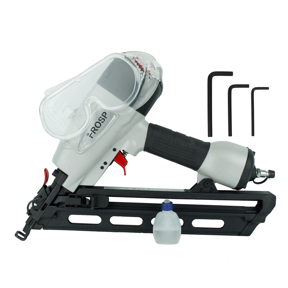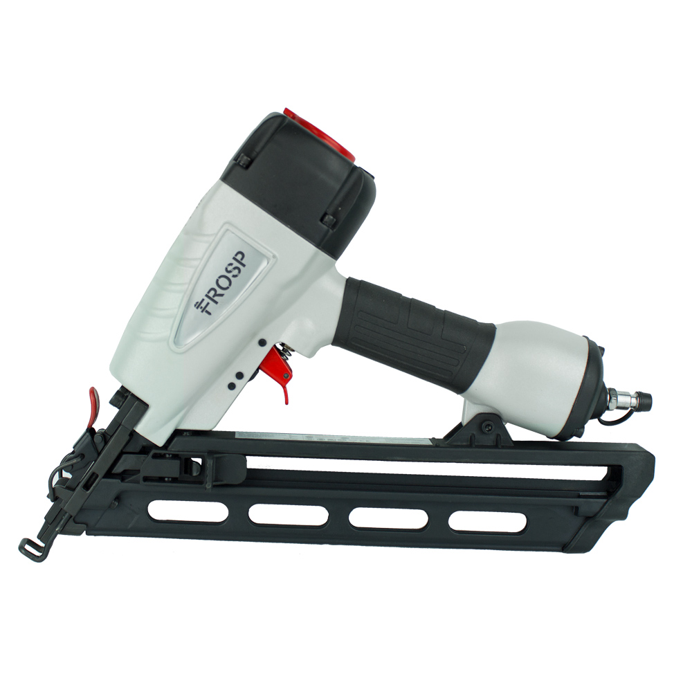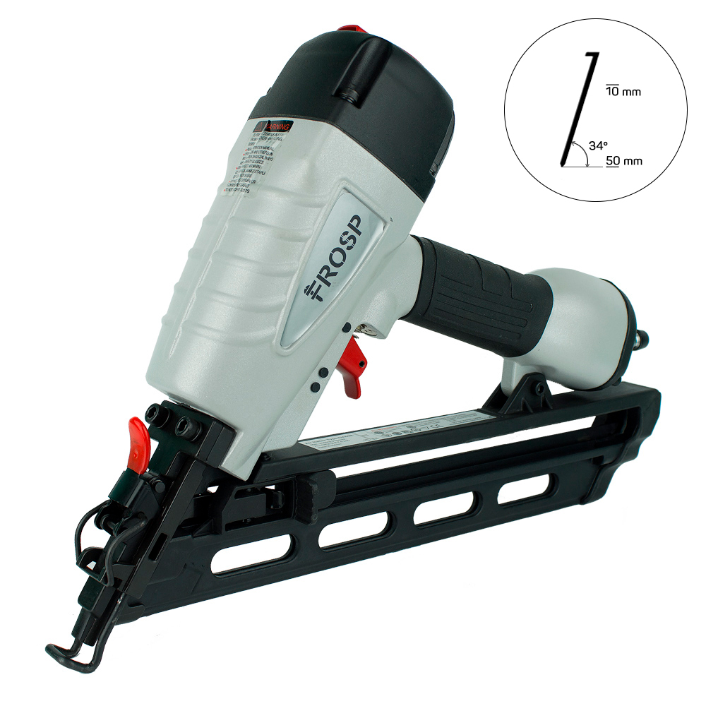 FROSP-6434 – реечный гвоздезабивной пистолет. Предназначен для ремонта и изготовления деревянных конструкций. Применяется для строительства, настила полов, создании мебели, каркасов, паллет, подиумов. Бьёт гвоздь длинной 32-64 мм, диаметром 1,8 мм с ёмкостью магазина — 100 гвоздей.