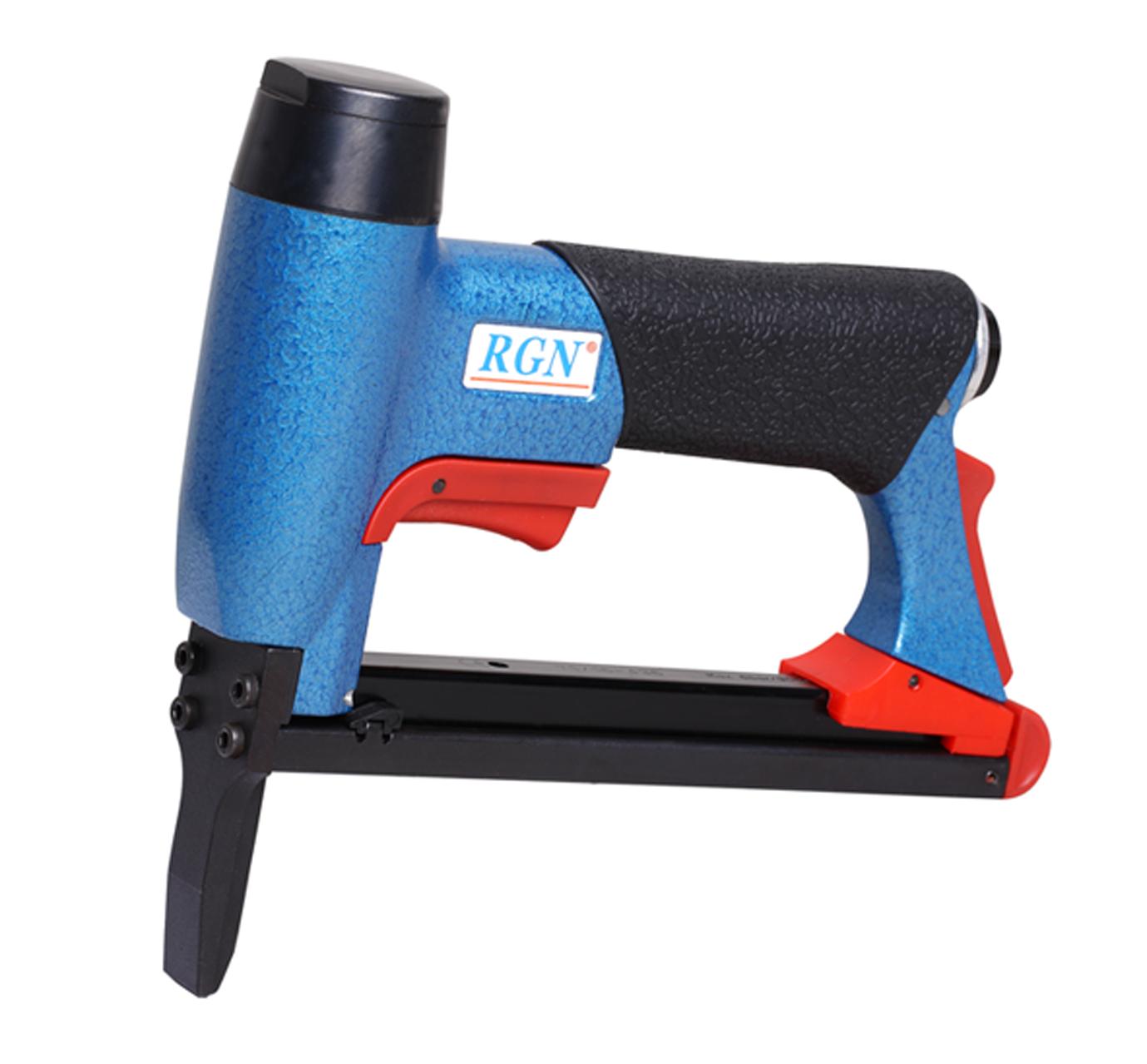 Скобозабивной пистолет RGN 8016L-429 с удлиненным носиком для обивочной скобы тип 80. Удлиненная носовая часть пневмостеплера позволяет забивать скобы в труднодоступных местах и делает его более функциональным инструментом при производстве мебели и деревянных каркасных изделиях. Удобная эргономическая прорезиненная рукоятка и малый вес делают работу с инструментом удобной и безопасной. Длинна носика 5 см.