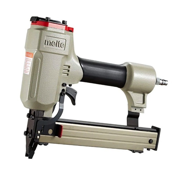 Скобозабивной пневматический пистолет meite 9240B — это промышленная модель инструмента для каркасных скоб среднего сечения, «стреляющий» мебельной скобой калибра 18Ga, спинка 8,8 мм длина от 25 мм до 40 мм. Применяется в первую очередь при изготовлении мебельных каркасов, рамок, опбрешеток и прочих деревянных изделий в специально организованных местах как внутри помещений, так и на открытом воздухе с переменной влажностью и минусовой температурой. Высокая производительность. Степлер надежен и прост в эксплуатации, работа с ним не требует специальных знаний и навыков. Используемые скобы: тип 92, Bea 92-192, Prebena H