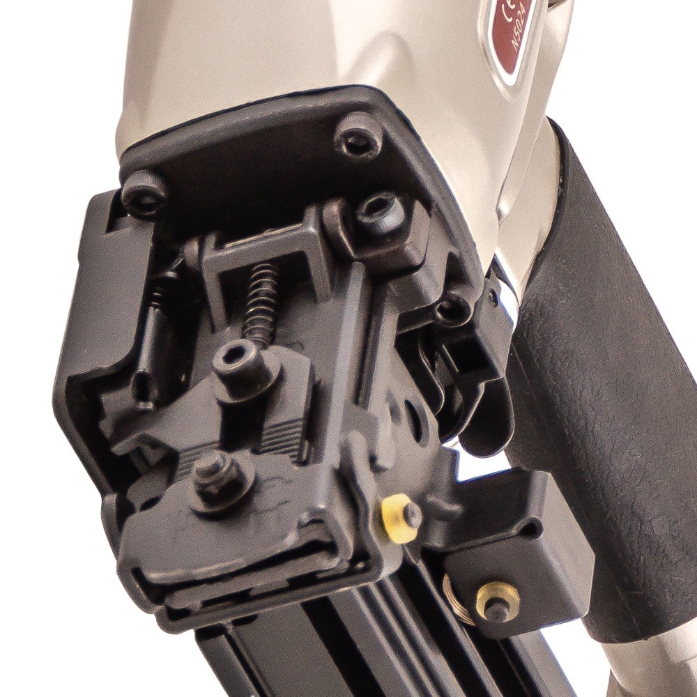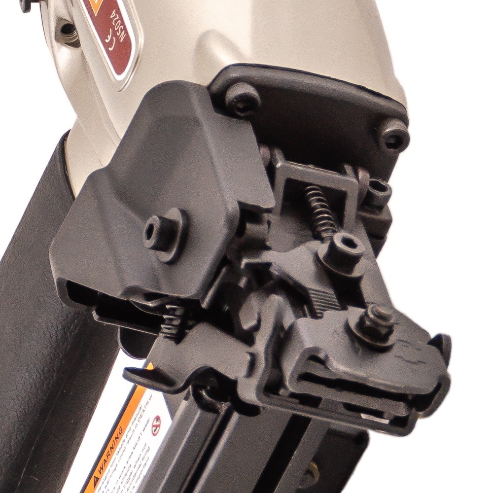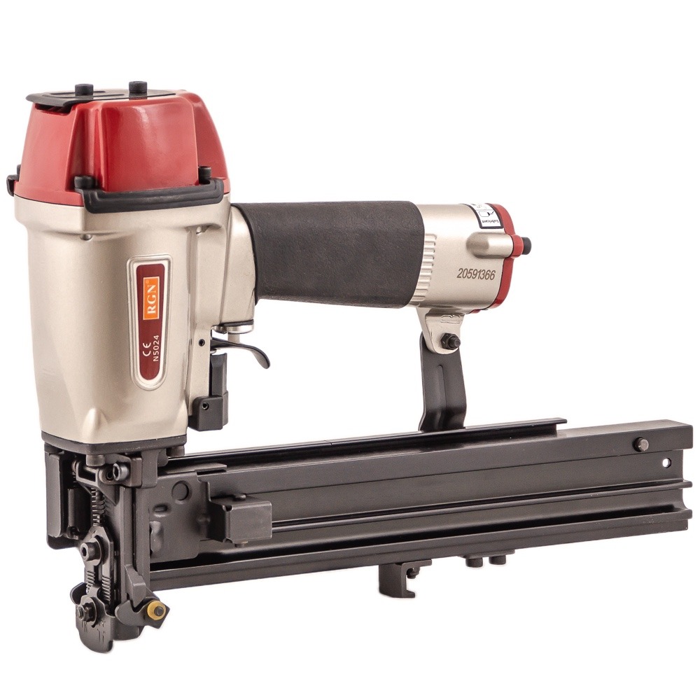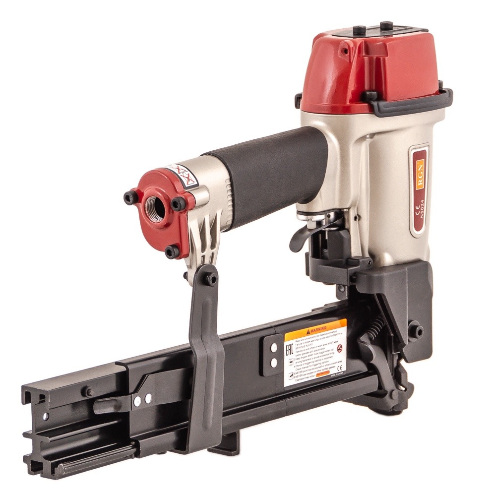 Скобозабивной пневмопистолет N5024R для широкой (26,4 мм) каркасной скобы. Используется при изготовлении мебельных каркасов, деревянной тары, других конструкций из дерева, а также при проведении строительных и отделочных работ. Применяемый тип скобы: Omer WP, Prebena WS, Senco P, длина 16-50 мм. Калибр проволоки — 16Ga (1.6×1.4 мм) Ширина спинки 26,4 мм.
