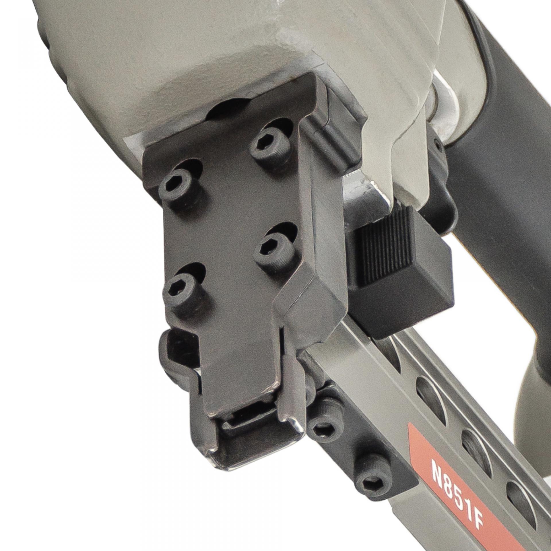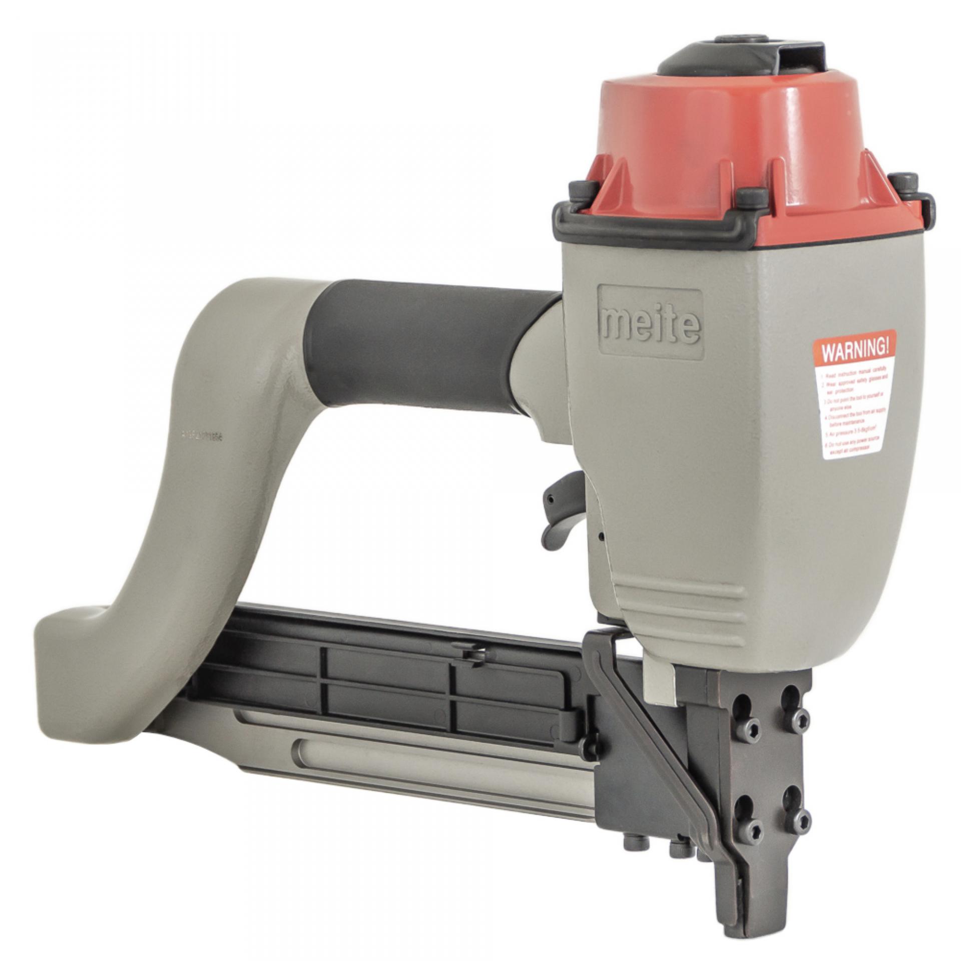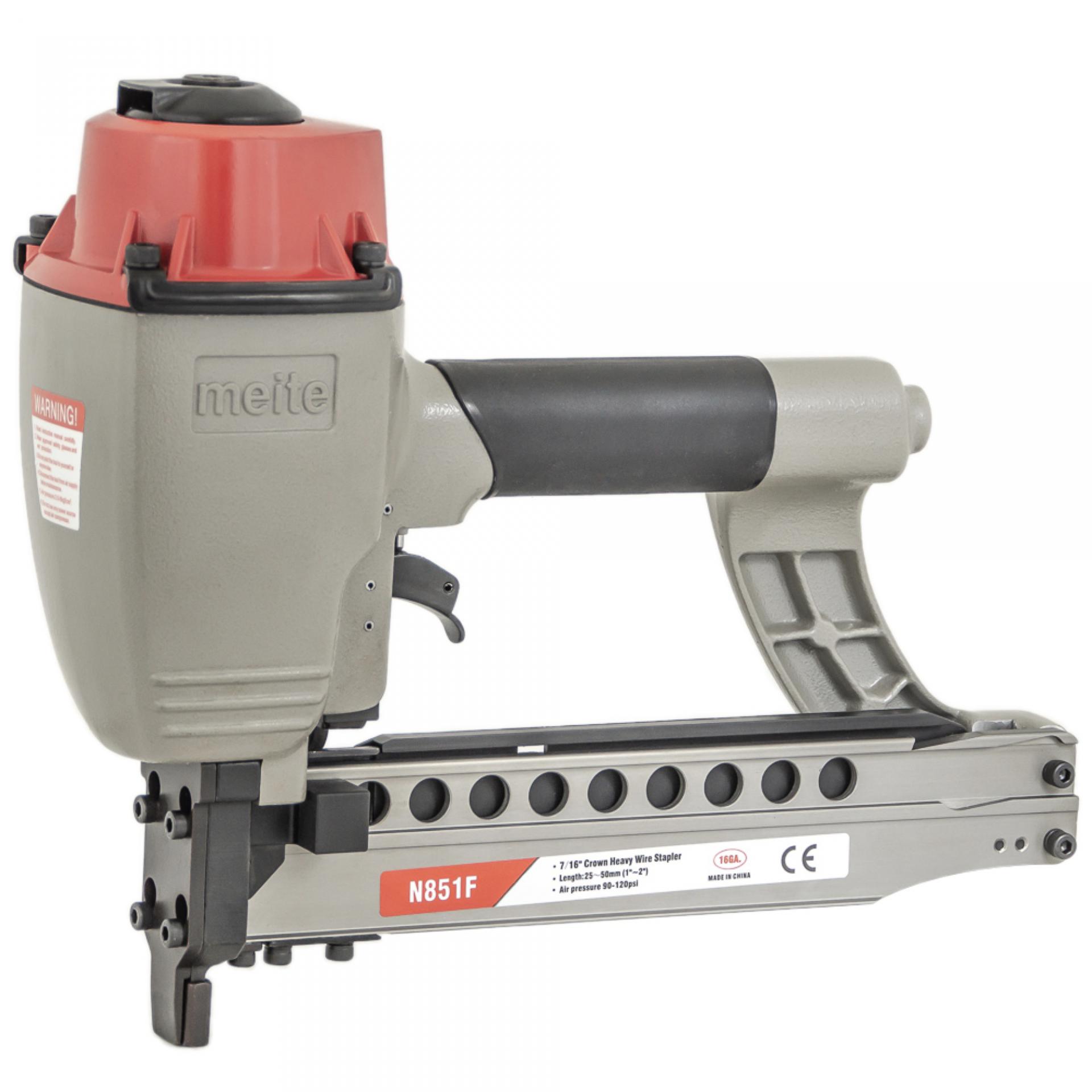 Скобозабивной пневматический пистолет meite N851F — это промышленная модель инструмента для каркасных скоб большого сечения, «стреляющий» мебельной скобой калибра 16Ga, спинка 10,8 мм длина от 25 мм до 50 мм. Применяется в первую очередь при изготовлении мебельных каркасов, рамок, опбрешеток и прочих деревянных изделий в специально организованных местах как внутри помещений, так и на открытом воздухе с переменной влажностью и минусовой температурой. Высокая производительность. Степлер надежен и прост в эксплуатации, работа с ним не требует специальных знаний и навыков. Используемые скобы: тип M2, Bea 155, Prebena L, Senco N