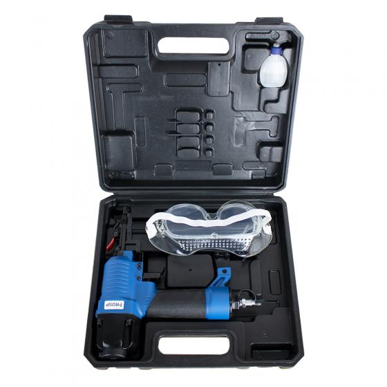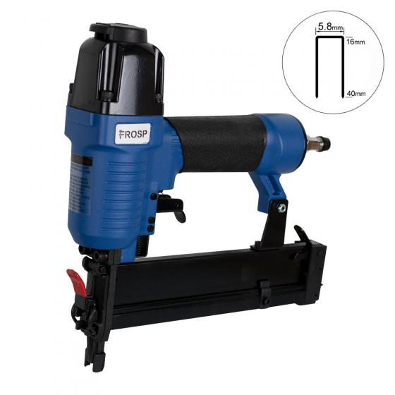 Скобозабивной пневмопистолет FROSP F9140 предназначен для выполнения разного рода крепежных работ. Может использоваться для самых разных материалов: ткани, кожи, гипсокартона, пластика и прочих. Подходит для применения как в бытовых, частных нуждах, так и в производственно-промышленных масштабах. Работает ударным действием посредством сжатого воздуха.