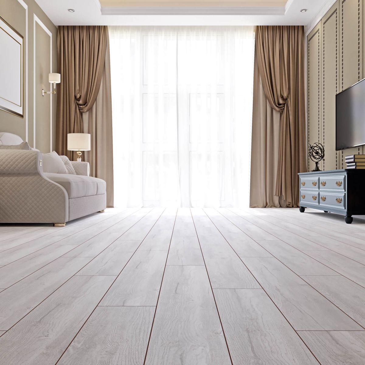 В коллекции представлены универсальные классические расцветки ламината, что позволяет использовать его в интерьерах разного стиля. Простую и быструю укладку пола обеспечивает современная технология соединения досок.