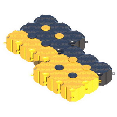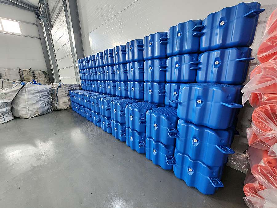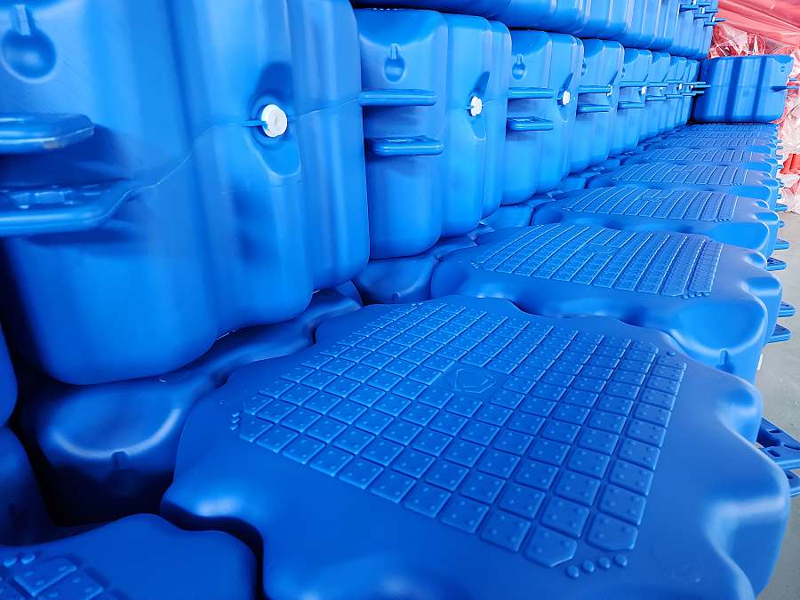Модульные понтоны 500x500x400мм имеют высокую грузоподъемность — до 376кг/м2.