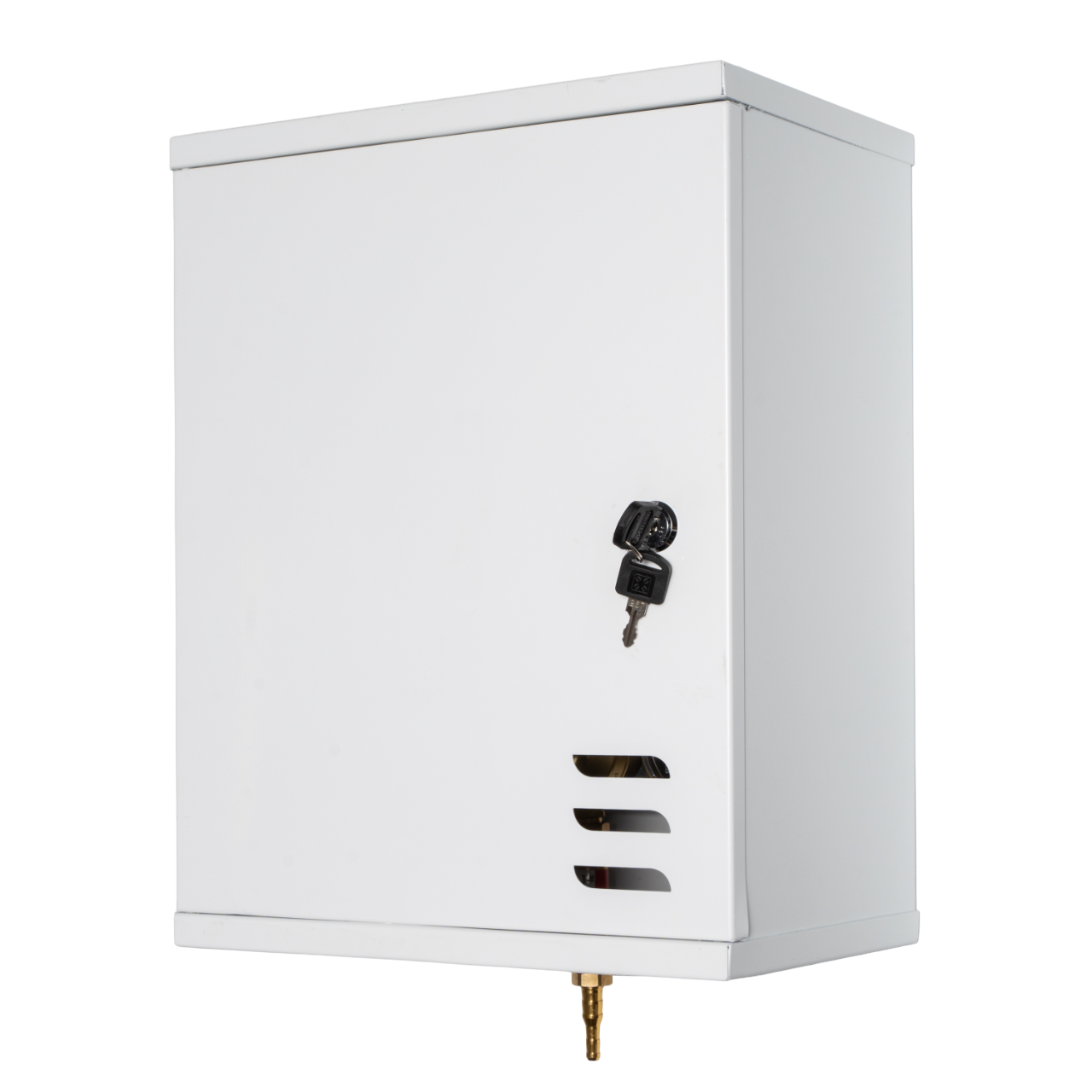 Пост состоит из металлического шкафа с замком, окрашенного в цвет, соответствующий газу и наклейками по ГОСТ 12.2.008, шарового крана, сетевого редуктора, затвора предохранительного (опционально) и соединительной арматуры.