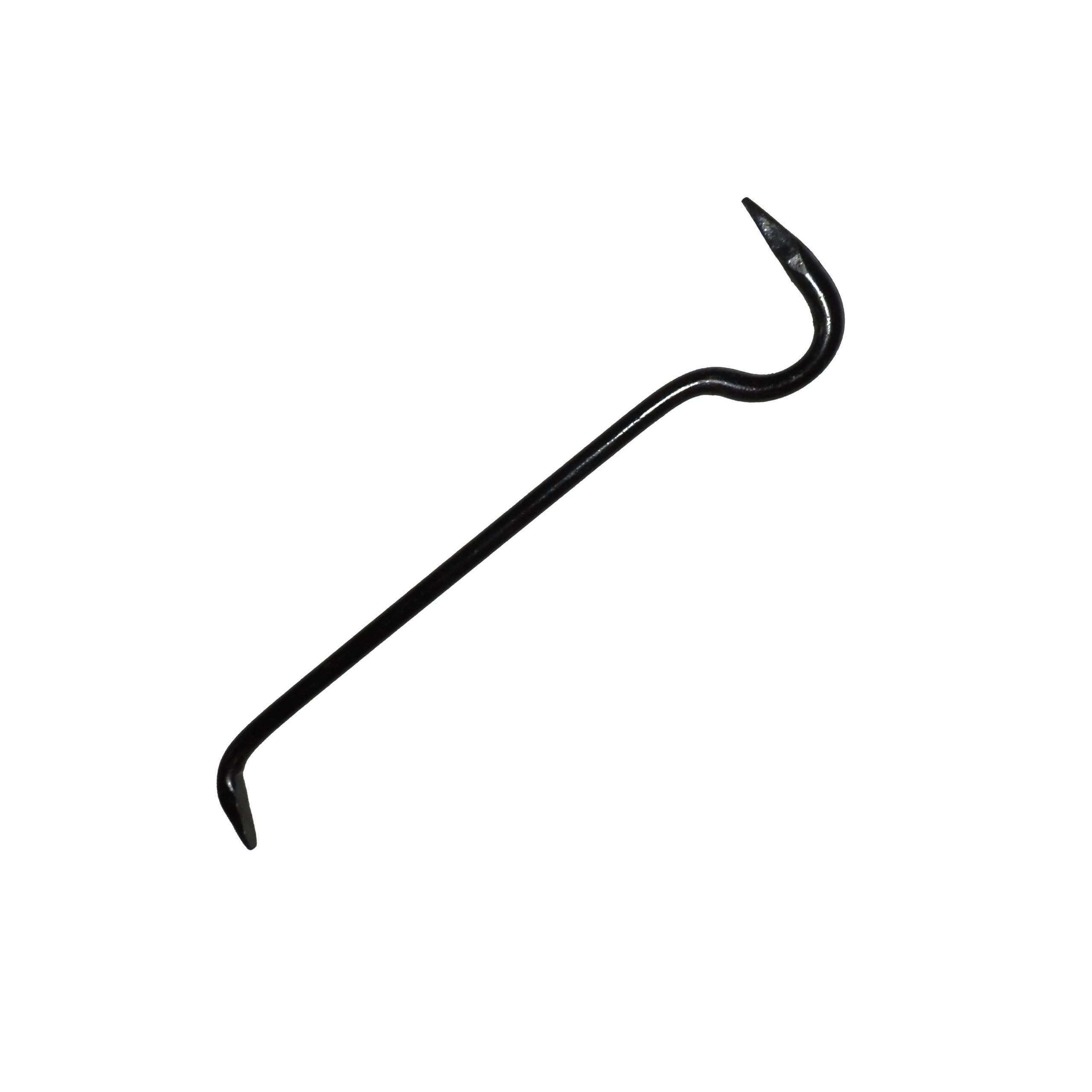 Длина инструмента составляет 1,1 м, вес – 3,5 кг. Он представляет собой металлический стержень черного цвета. Во время пожаров с его помощью можно выполнять разборку строительных конструкций и завалов, вскрывать двери с окнами в зданиях. Металлический лом хорошо подходит для демонтажа перегородок и препятствий, возникающих на пути эвакуации. Им пользуются при расчистке мест образования очагов воспламенения.