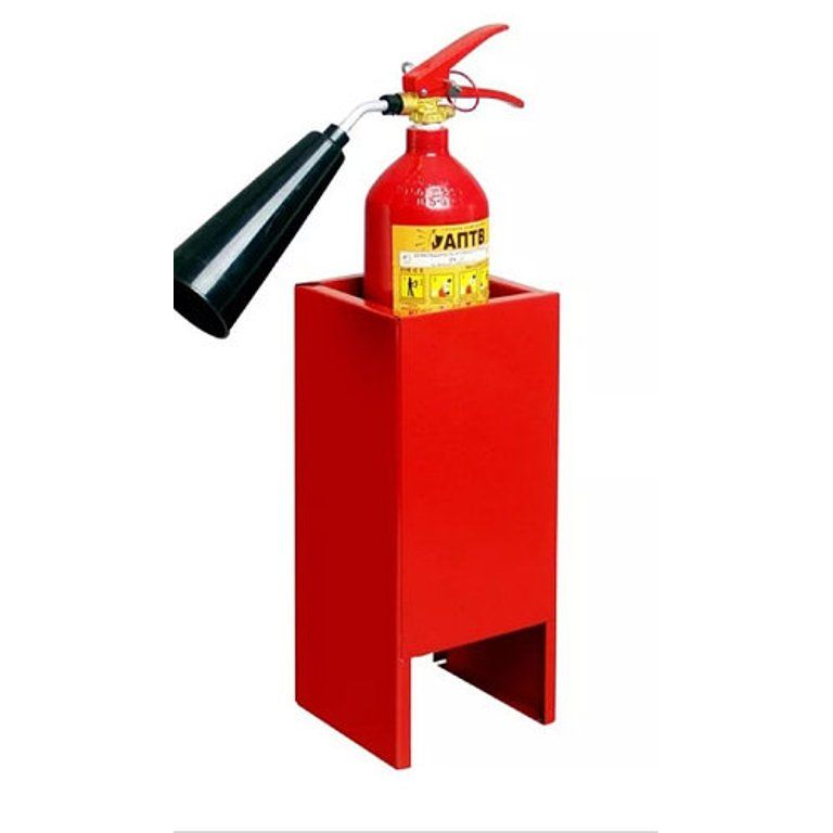 Подставка предназначена для напольного расположения переносных огнетушителей. Она закрепляет баллон в вертикальном положении и защищает его от случайных повреждений или падений.
