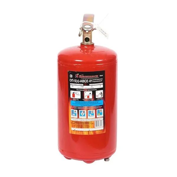 Огнетушитель порошковый ОП-5 (з) ABCЕ используется для тушения возгораний. Он предназначен для тлеющих материалов, электрических установок, которые находятся под напряжением более 1000 В. Также подходит для горючей жидкости и газов.