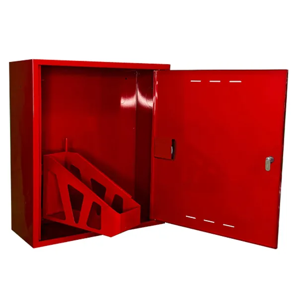 Красный металлический корпус с порошковым покрытием надежно защищает пожарный кран и рукав от внешних воздействий. Дверцы открываются на 160 градусов, обеспечивая быстрый доступ к оборудованию в экстренной ситуации.