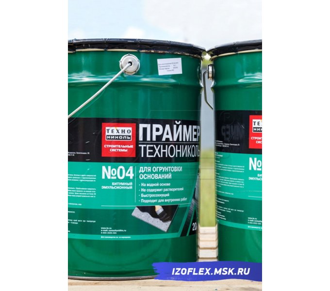 Битумный праймер ТехноНИКОЛЬ № 4 являет собой водную дисперсию битума. Он предназначен для грунтовки поверхностей перед последующими гидроизоляционными или мастичными работами. Основа для обработки данным продуктом может быть деревянной, бетонной, металлической.