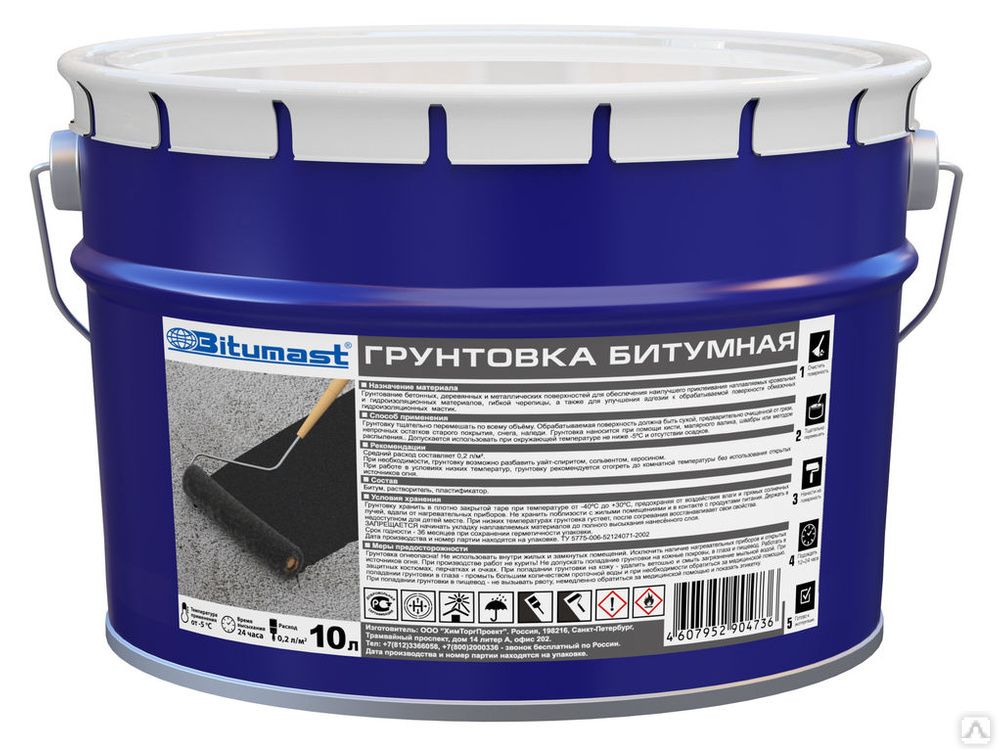 Праймер представляет собой раствор высококачественных нефтяных битумов и органических растворителей.