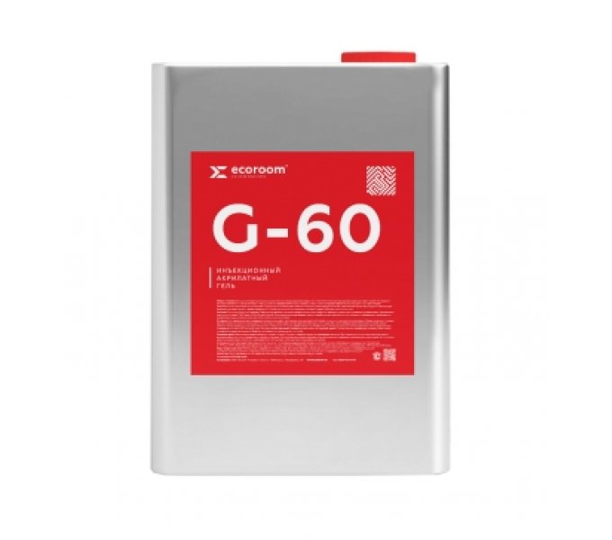 Ecoroom G-60 инъекционный гель – влагоотверждаемый, однокомпонентный полиуретановый состав с быстрым временем гелеобразования при взаимодействии с водой. Гель ecoroom G-60 обладает низкой вязкостью без содержания растворителей. Материал является гидрофильным, при контакте с водой меняет свои геометрические параметры, набухает, обеспечивая гидроизолирующую пломбу. Сохраняет эластичность после полимеризации. Пористость и прочность конечного полимеризованного материала зависят от соотношения исходного состава и воды.