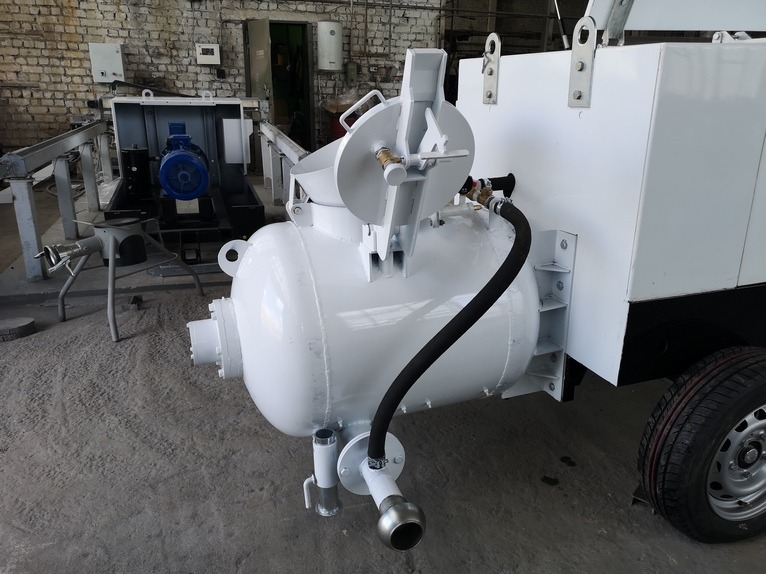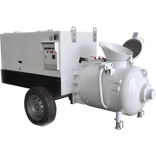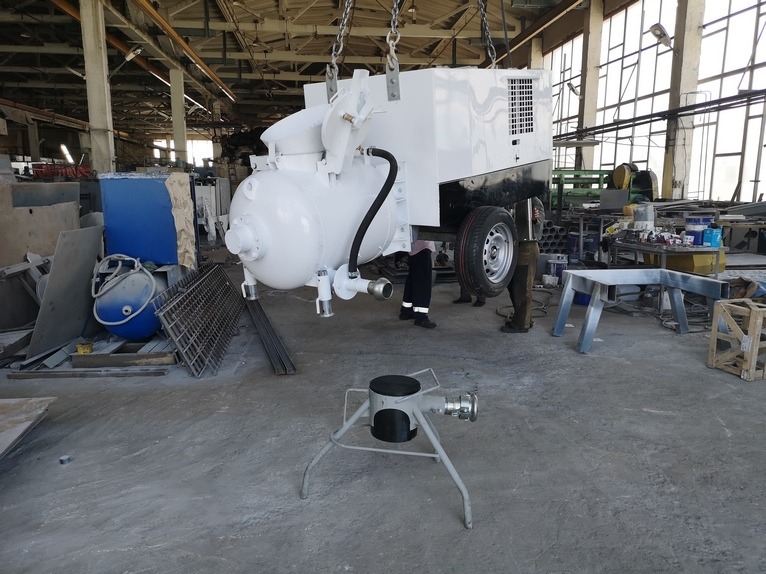 Пневмонагнетатель оснащается электрическим двигателем и винтовым компрессором производительностью 4,5 м³/мин,это позволяет использовать данную машину как источник сжатого воздуха и подключать к ней различный пневмоинструмент. Винтовой компрессор работает стабильнее, дольше, и требует меньше ухода. Ресурс винтового компрессора составляет 40 000 моточасов против 10 000 моточасов у поршневого.