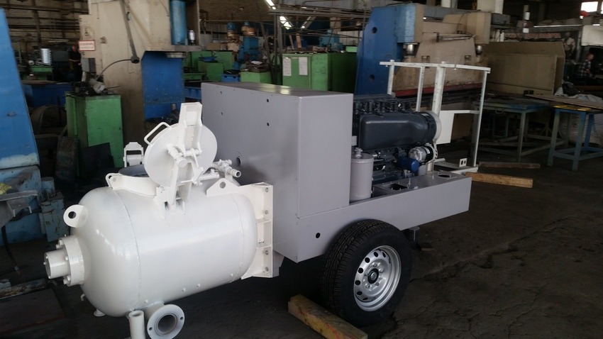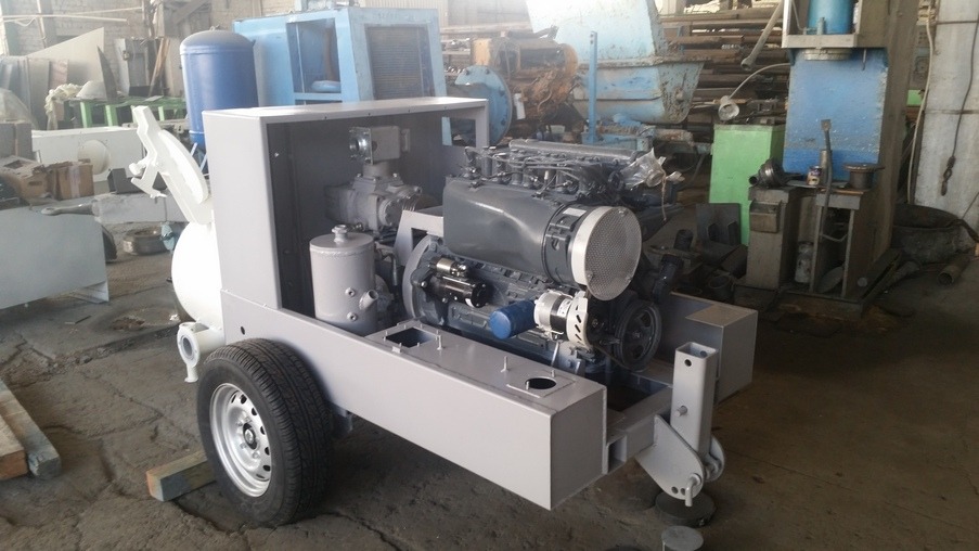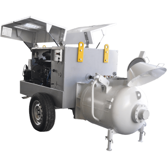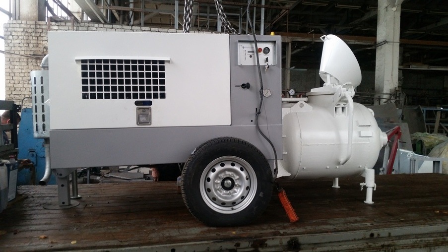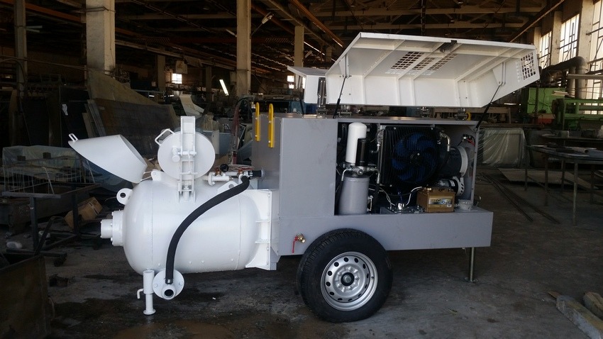 Пневмонагнетатель СО-243 комплектуется дизельным двигателем и винтовым компрессором производительностью 4,0 м. куб./мин. Это позволяет использовать данную машину как источник сжатого воздуха и подключать к ней различный пневмоинструмент. В СО-243 использован гидравлический привод бетоносмесителя.