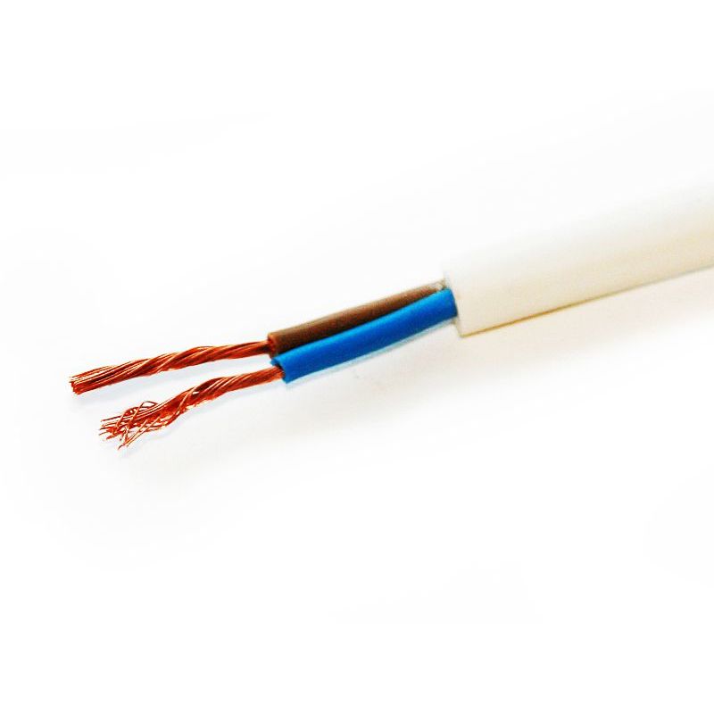 Две жилы, скрученные из тонких медных проводков. Каждая в цветной изоляции. Обе запаяны в круглую оболочку. Оболочка и изоляция изготовлены из поливинилхлорида. Один из проводов используется как «фаза», другой как «нуль».