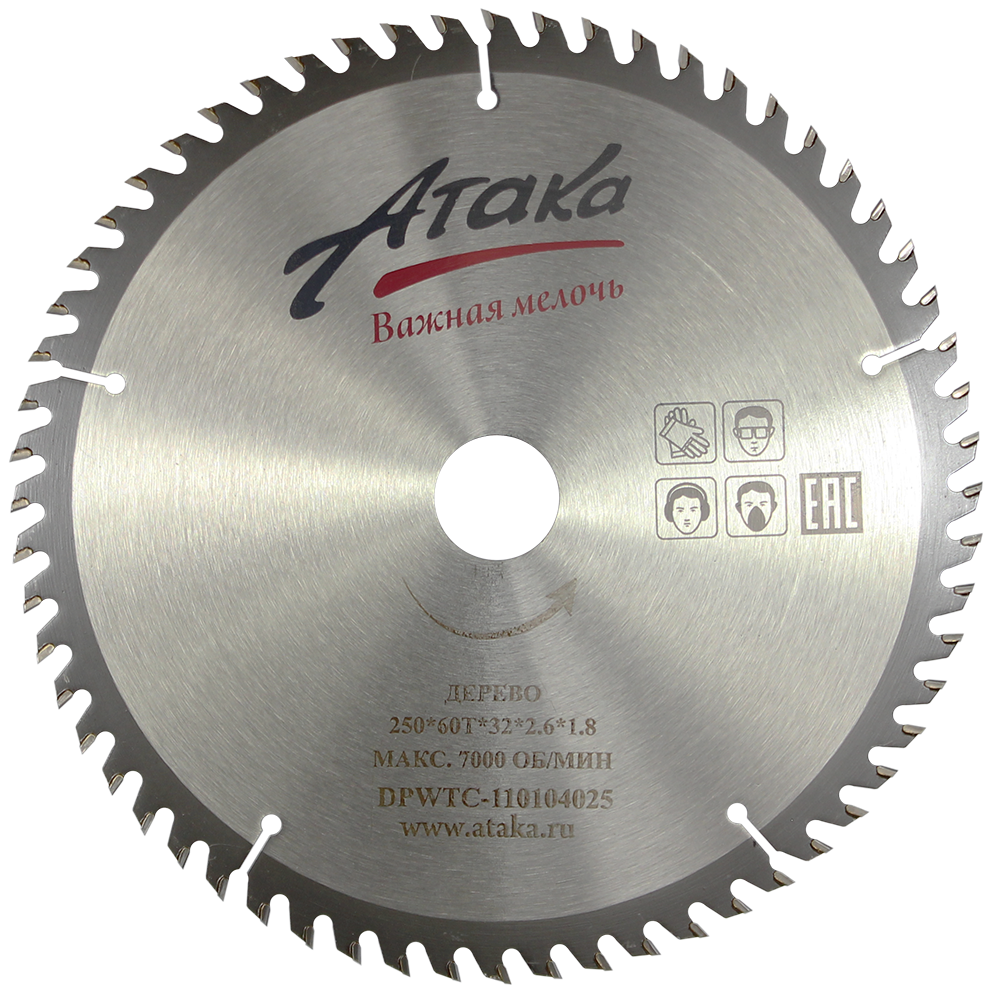 Пильный диск по дереву Атака 250*60T*32 ч/рез профи