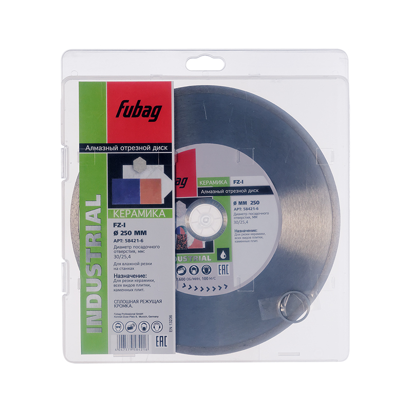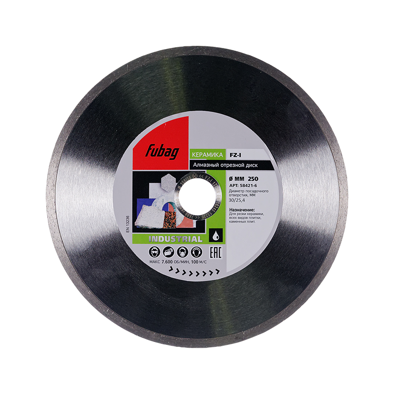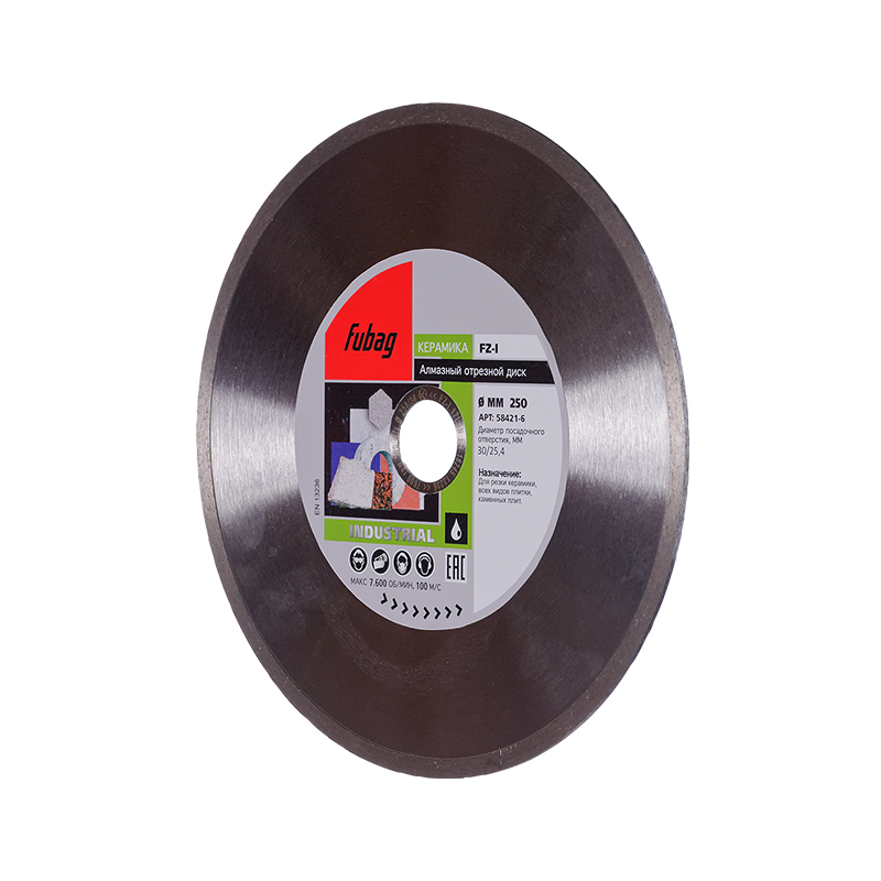 Алмазный отрезной диск для керамики со сплошной режущей кромкой диаметром 250 мм и посадочным отверстием 30-25.4 мм
