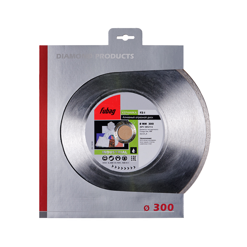 Алмазный отрезной диск для керамики со сплошной режущей кромкой диаметром 300 мм и посадочным отверстием 30-25.4 мм