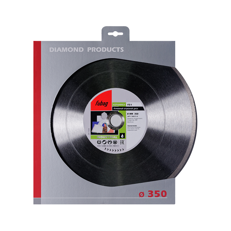Алмазный отрезной диск для керамики со сплошной режущей кромкой диаметром 350 мм и посадочным отверстием 30-25.4 мм