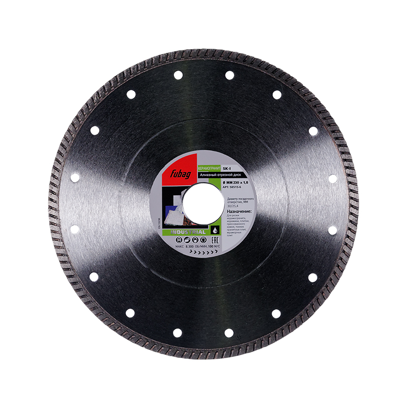 Алмазный отрезной диск для керамогранита с турбо режущей кромкой диаметром 230 мм и посадочным отверстием 30-25.4 мм