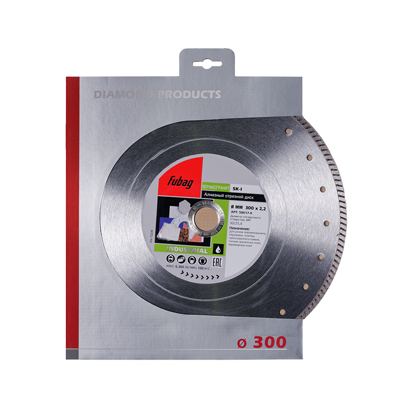 Алмазный отрезной диск для керамогранита с турбо режущей кромкой диаметром 300 мм и посадочным отверстием 30-25.4 мм