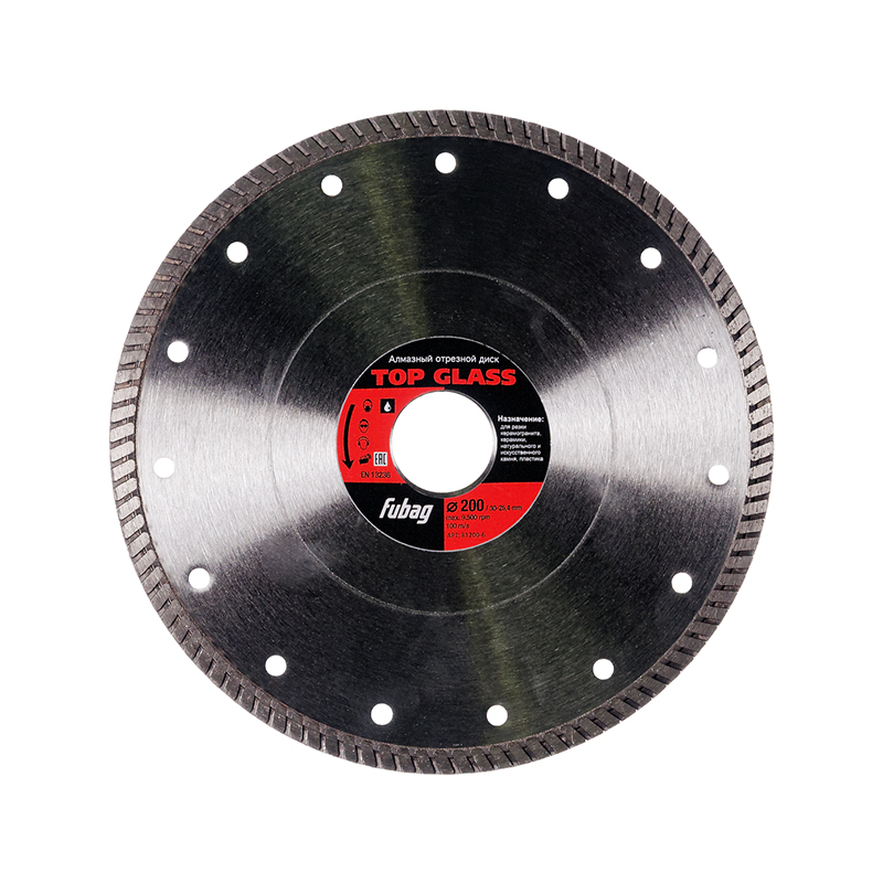 Алмазный отрезной диск для керамогранита с турбо режущей кромкой диаметром 200 мм и посадочным отверстием 30-25.4 мм. Рекомендован для резки такого материала как: керамогранит, керамика, натуральный и искусственный камень, пластик.