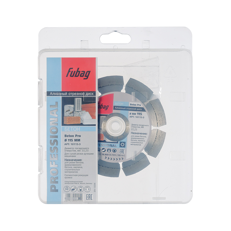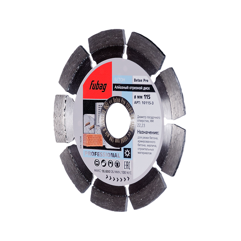 Алмазный отрезной диск для бетона с сегментной режущей кромкой диаметром 115 мм и посадочным отверстием 22.2 мм