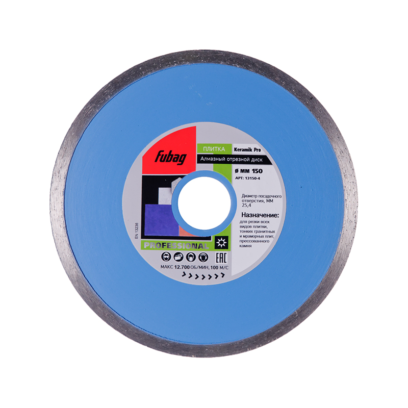 Алмазный отрезной диск для плитки со сплошной режущей кромкой диаметром 150 мм и посадочным отверстием 25.4 мм