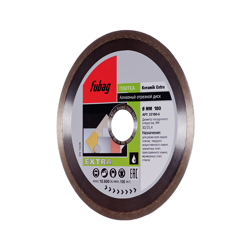 Алмазный отрезной диск для плитки с сегментной режущей кромкой диаметром 180 мм и посадочным отверстием 30-25.4 мм