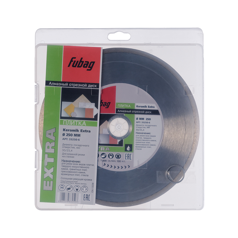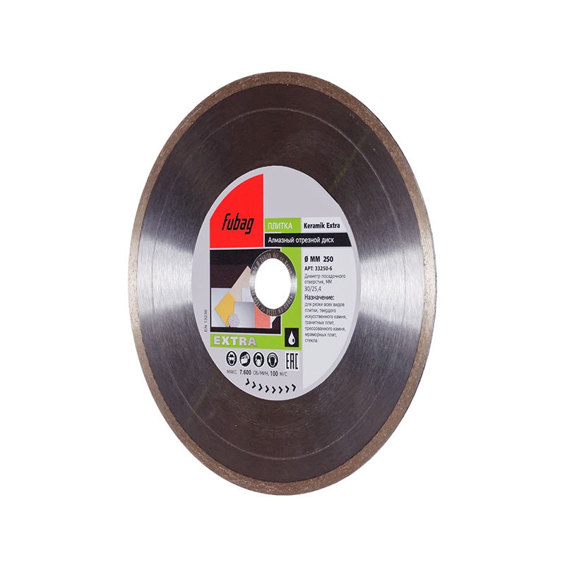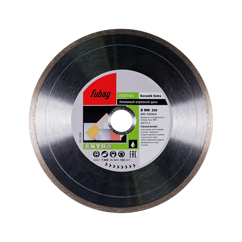 Алмазный отрезной диск для плитки с сегментной режущей кромкой диаметром 250 мм и посадочным отверстием 30-25.4 мм