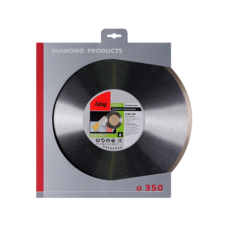 Алмазный отрезной диск для плитки с сегментной режущей кромкой диаметром 350 мм и посадочным отверстием 30-25.4 мм