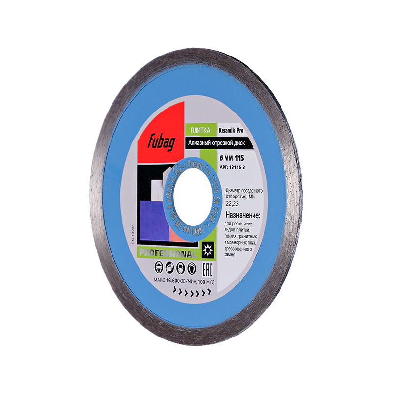 Алмазный отрезной диск для плитки со сплошной режущей кромкой диаметром 115 мм и посадочным отверстием 22.2 мм