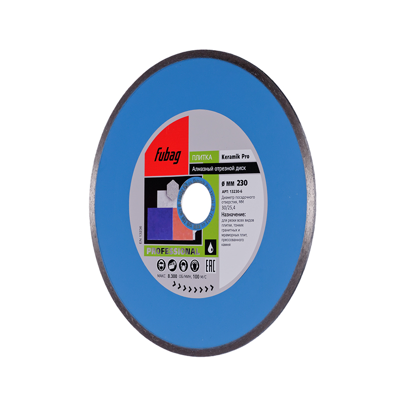Алмазный отрезной диск для плитки со сплошной режущей кромкой диаметром 230 мм и посадочным отверстием 30-25.4 мм