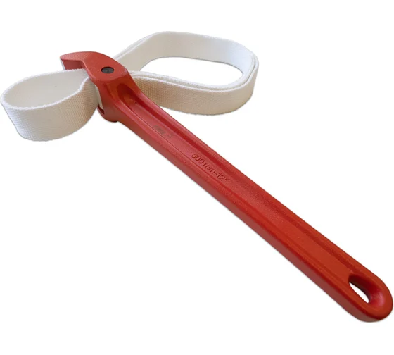 Ремешковый ключ для труб D до 220 мм предназначен для бережной работы с пластиковыми и полированными трубами, трубами с мягким металлическим покрытием, фильтрами Ø до 220 мм (8″)
