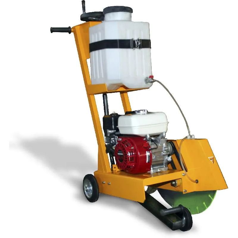 Данная модель оснащена двигателем Honda GX200, работающим на бензине АИ-92, с емкостью бака 3,1 л. Диаметр устанавливаемого алмазного диска — 40 см. При его помощи можно делать швы глубиной до 13,5 см. Также есть возможность установки дополнительного отрезного круга, что увеличивает ширину шва. Алмазные диски в комплект не входят и приобретаются отдельно. При их выборе следует учитывать высоту сегментов, размер и качество алмазов, а также соответствие инструмента обрабатываемому материалу.