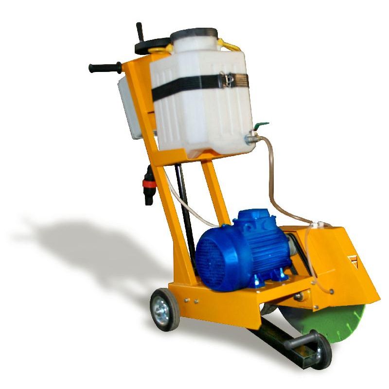 В электрическом двигателе мощностью 4кВт предусмотрена автоматическая защита от перегрузки. Глубина резки 135 мм, диаметр алмазного диска 400 мм. Наличие больших колес обеспечивает прочную устойчивость конструкции. Маневренность обусловлена небольшим весом устройства. Из преимуществ также стоит отметить отсутствие вредных выбросов в атмосферу, бесшумность двигателя.