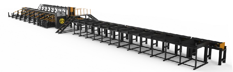 Может соединяться с гибочным центром и резьбонакатным роликом - Сила резки достигает 150 тонн, максимальный диаметр арматуры составляет 50 мм.