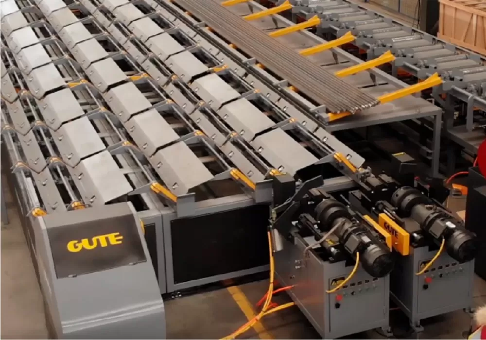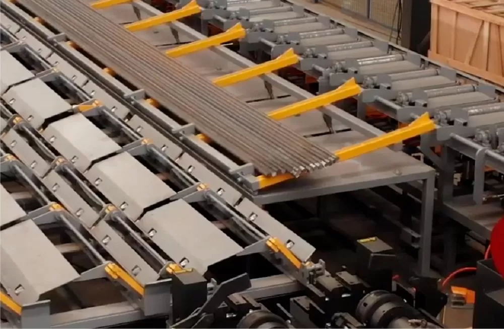 Автоматическая линия мерной резки, сортировки, холодной накатки резьбы под соединительную муфту, с функцией торцевой шлифовки для зачистки торцов. Диаметр резки 16-50 мм. Диаметр накатки 16-40 мм. Размер шлифленты 2100*76мм. Частота реза 2,5 реза в минуту.