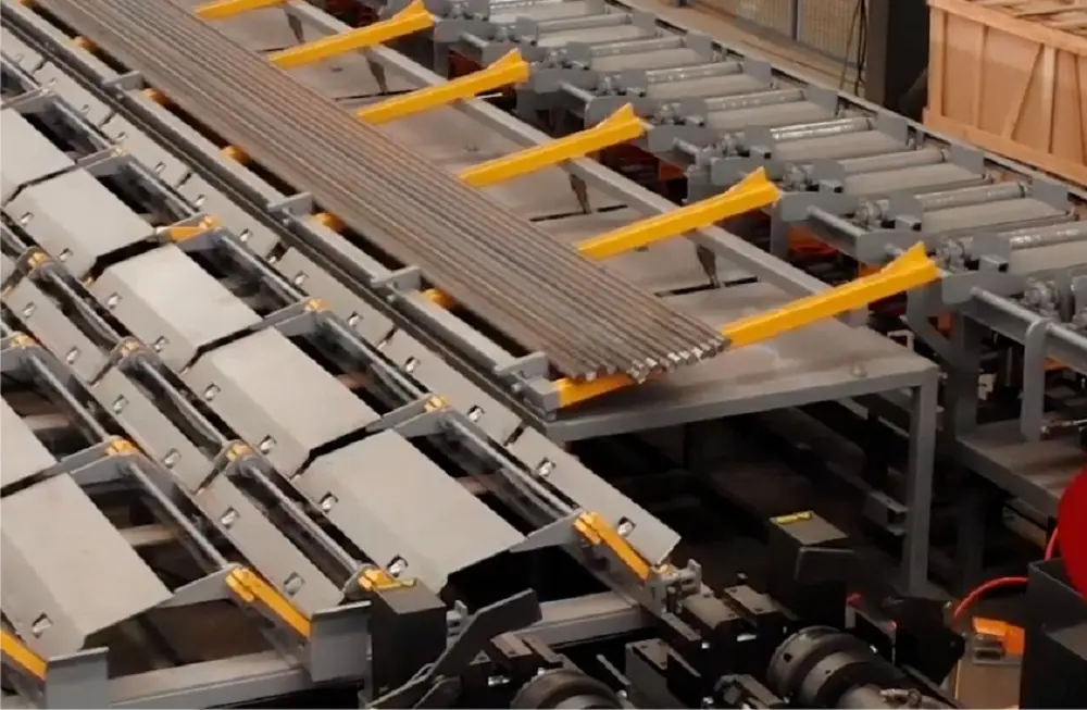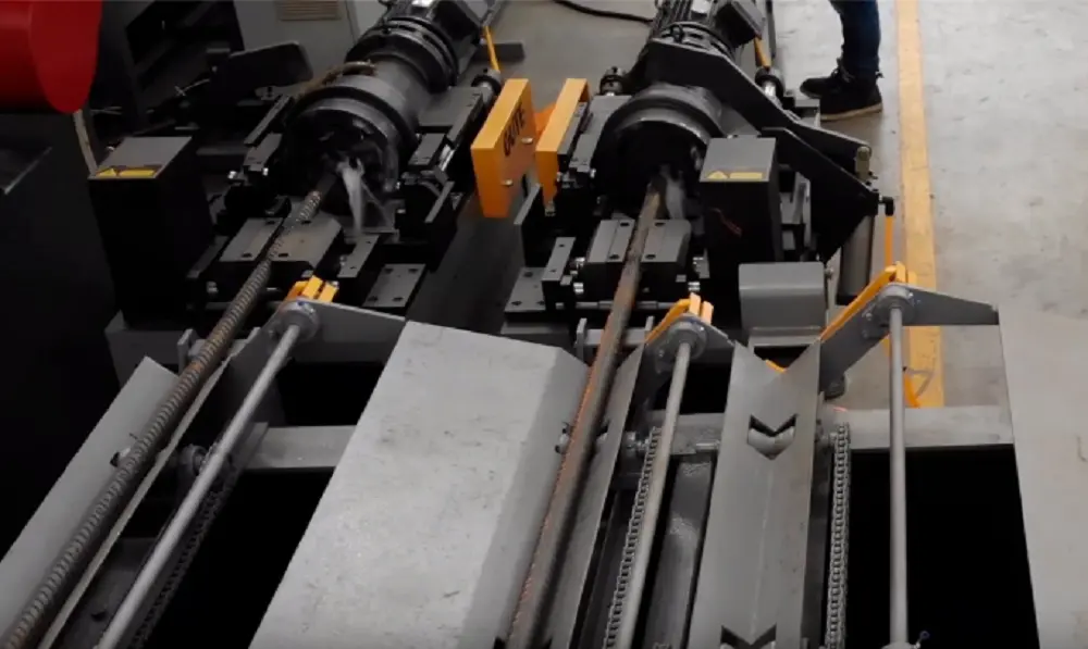 Высокоэффективная линия резки и сортировки прутковой арматурной стали с функцией холодной накатки резьбы на арматуру под соединительную муфту, совместила в себе конструктив западных аналогов и опыт обработки арматурной стали в Китае.